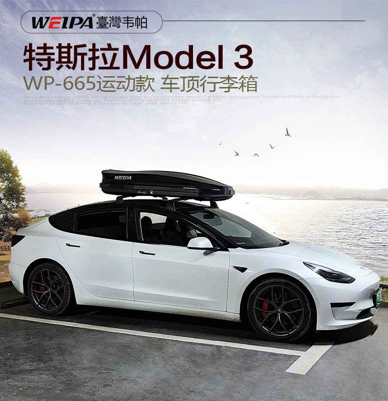 特斯拉Model-3安装 韦帕WEIPA运动款450L车顶行李箱