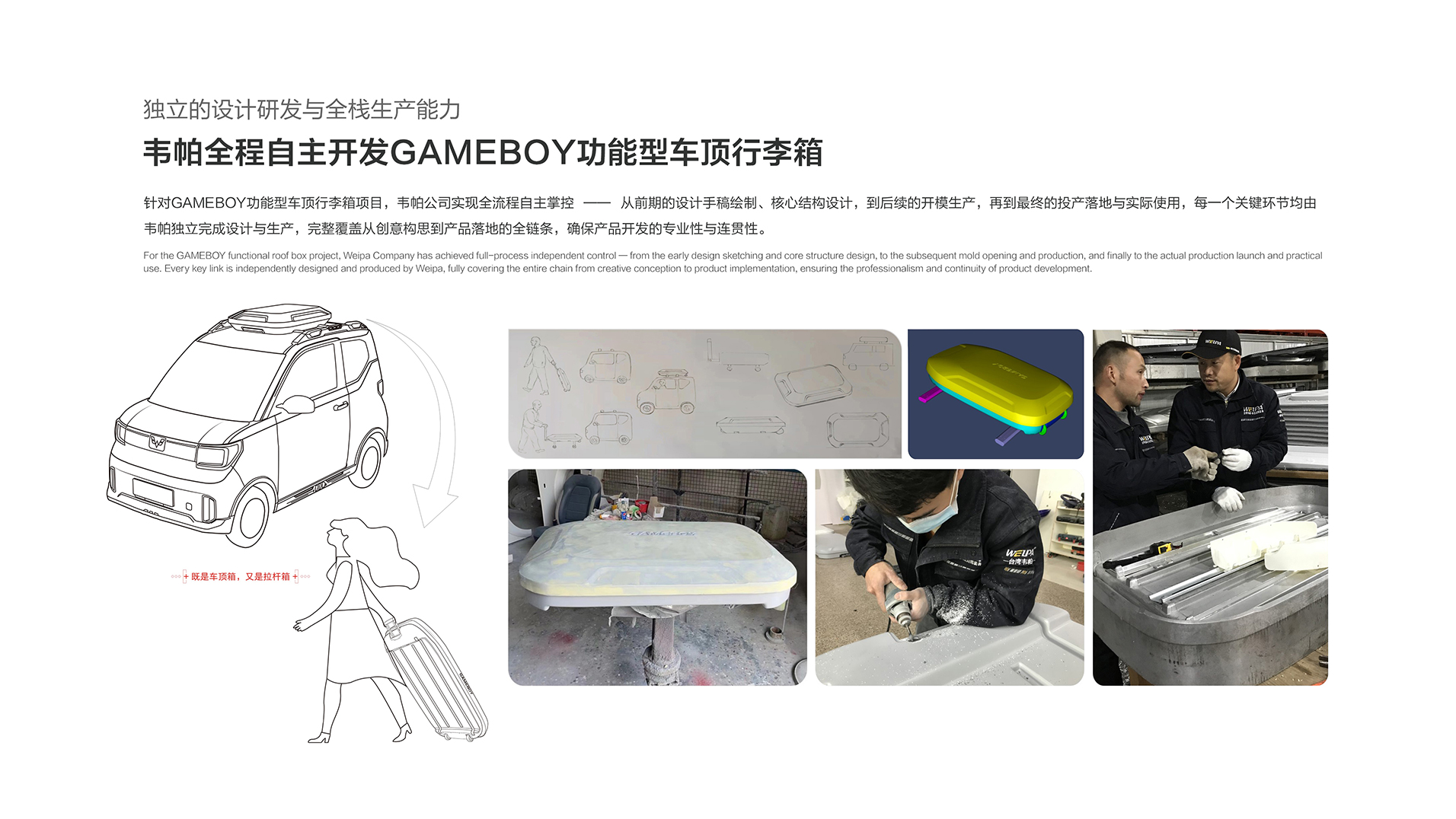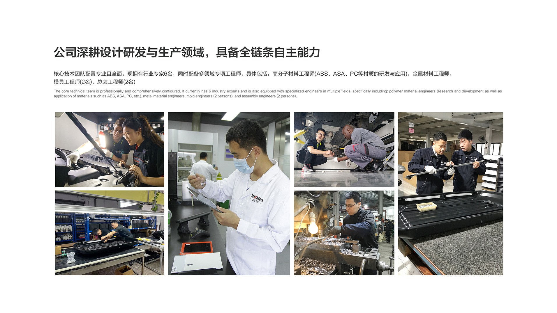 韦帕公司拥有专业的数据扫描、数据处理、产品3D设计、CAE仿真计算、产品测试、产品生产工艺仿真模拟等技术团队,承接与上汽通用、广汽菲克、五菱、红旗、理想、长安、蔚来、极氪、阿维塔、鸿蒙智行等汽车公司联合研发项目。