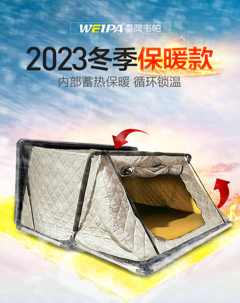看看咱们韦帕天猫旗舰店都有什么新产品吧,冬天来了寒风瑟瑟,韦帕早就为自驾游的游游们贴心准备了加棉加厚的保暖性能可靠的车顶帐篷,而且是分离式的内胆,天冷可以装上,天热可以拆卸下来,做到一个帐篷适应四季。