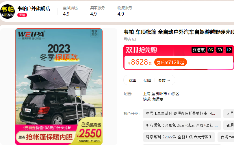 对于喜欢自驾游的朋友来说,平时中意的车顶行李箱,车顶帐篷想剁手又犹豫不决,到了双十一那就痛快的下单吧,省下的钱用来加油,它不香吗!
