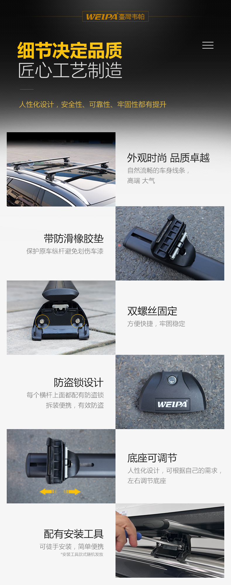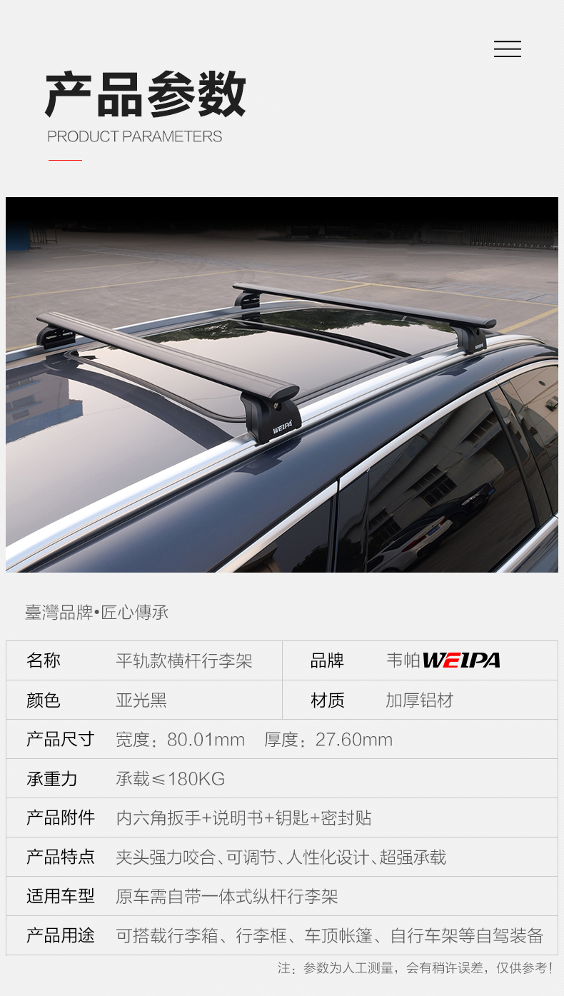当汽车拥有量达到一定范围之后,汽车行李架,汽车行李箱等自驾游装备也随着风生水起,很受广大车友的喜爱,就拿韦帕车顶行李架和韦帕车顶行李箱来说,每月都能销售出五六百套...更多
